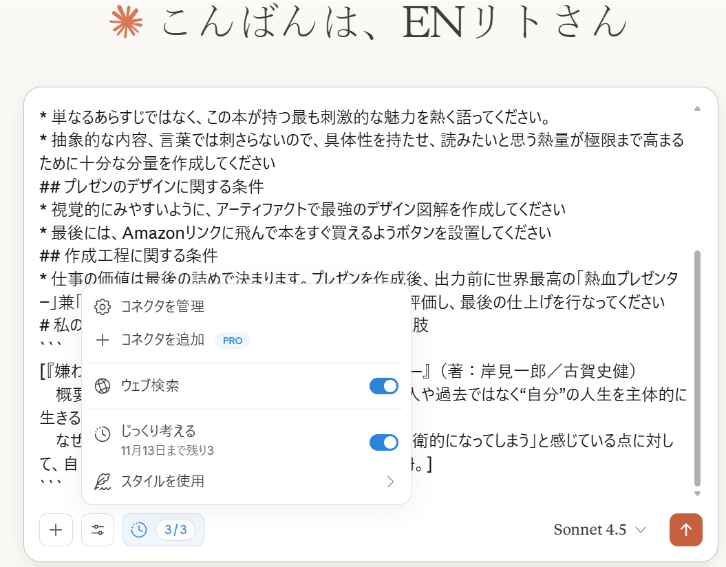 → Claudeで「本の熱血プレゼン」を作ってもらう。