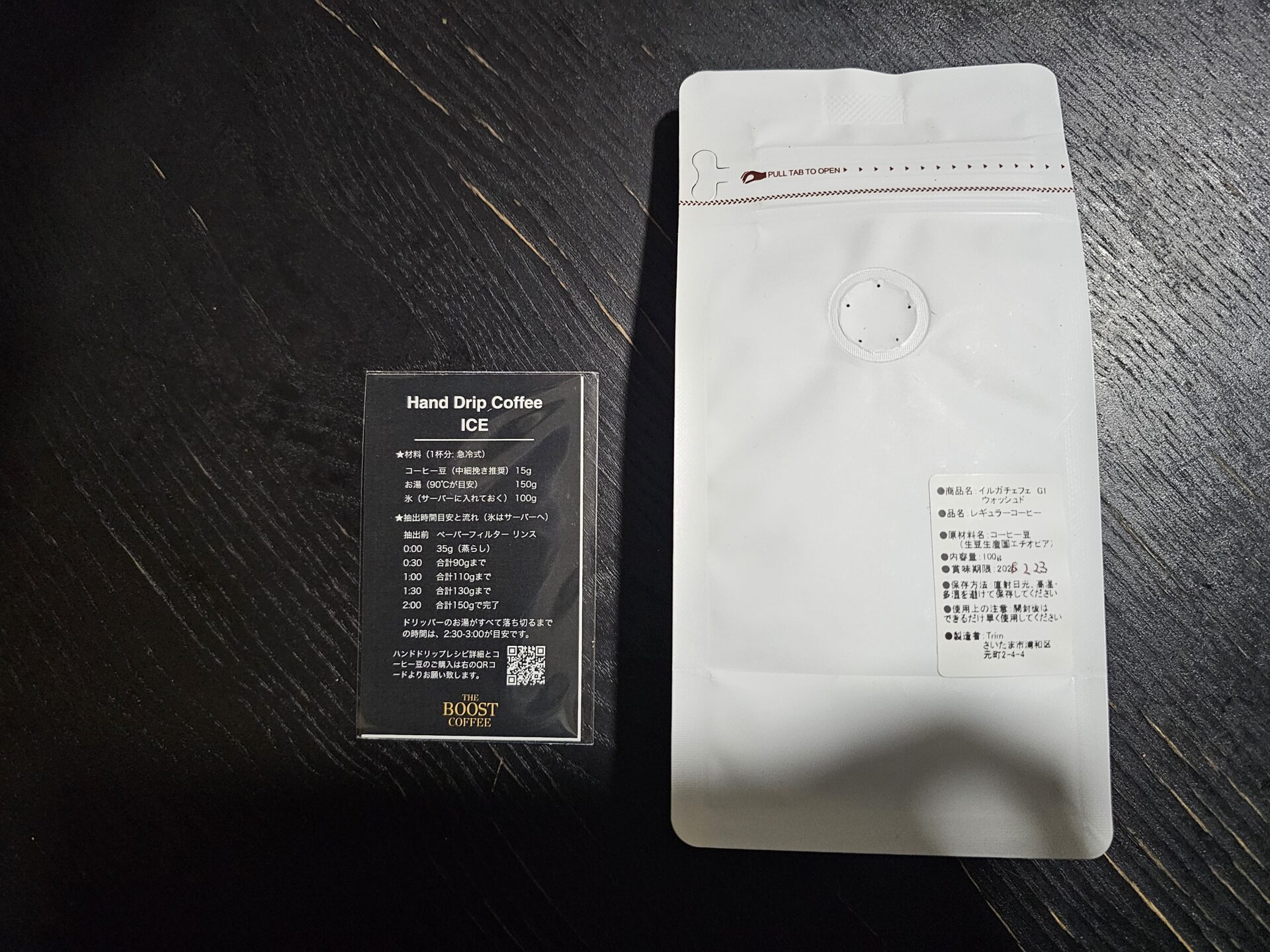 - 同封のカードに豆の特徴とハンドドリップレシピ(ホット/アイス)