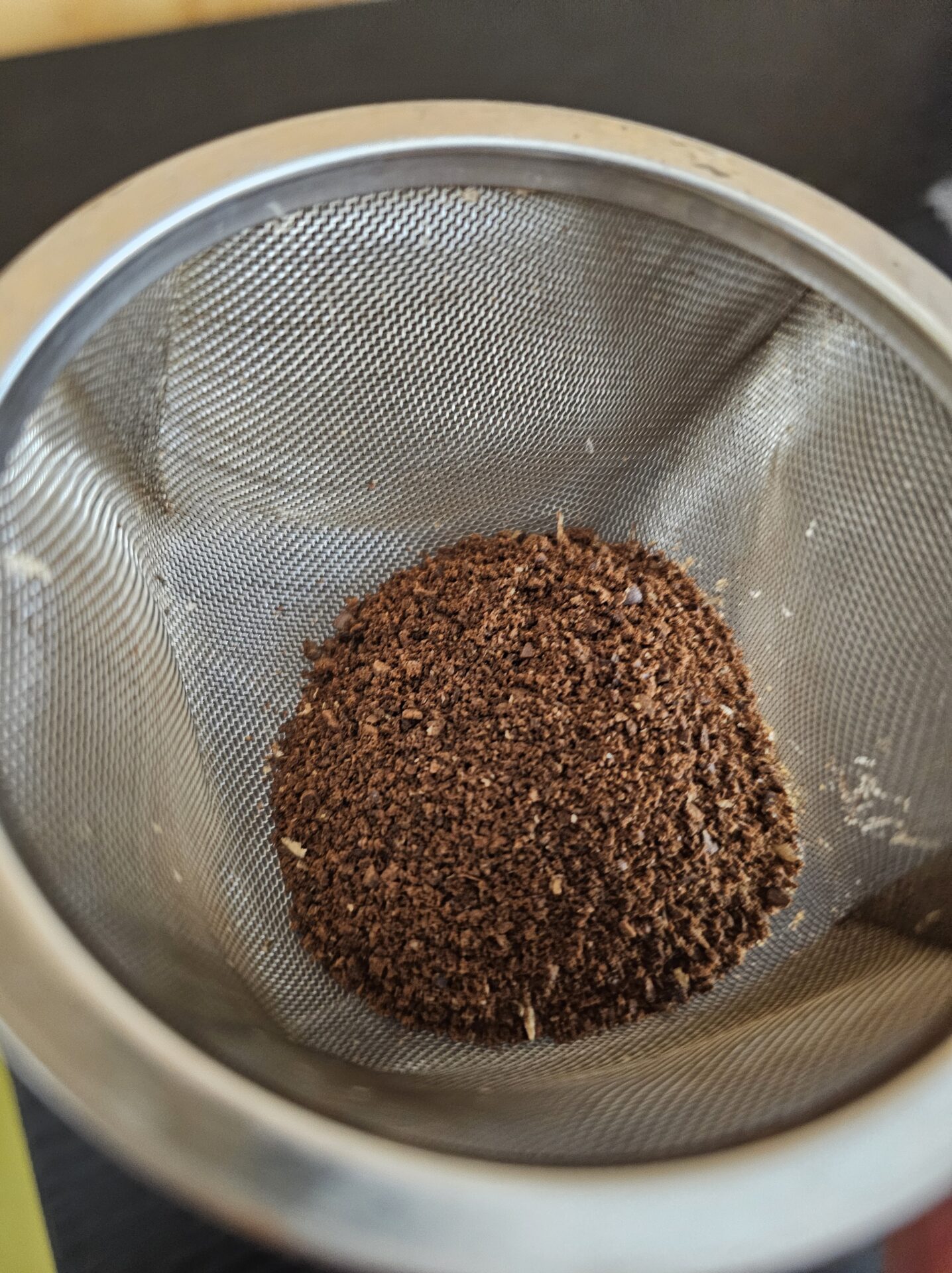 挽いた粉を茶こしに入れてふるうだけ。